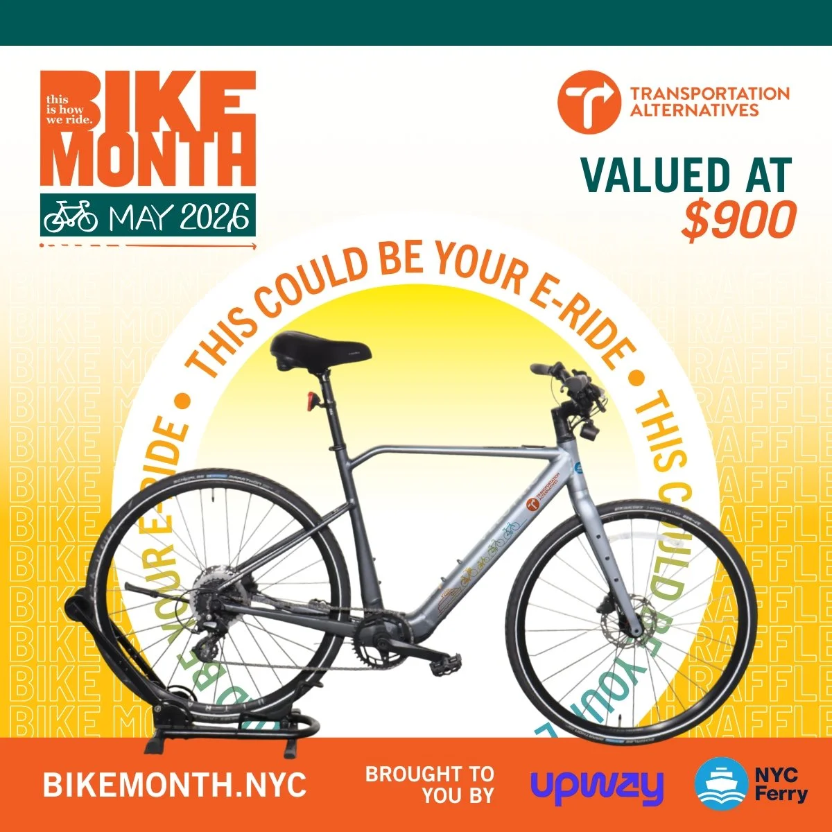 Join the Bike Month Challenge this may: log 20 miles TO enter to win aN Upway x nyc ferry e-bike Log your miles today to get a chance to win an e-Bike by UPWAY & nyc ferry In Partnership With Thank YOU